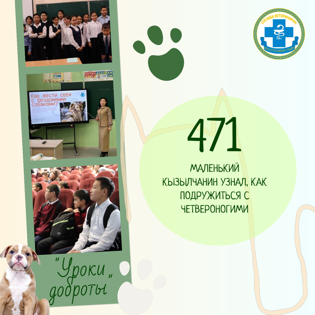 Как безопасно гладить собаку? Почему нельзя трогать чужого кота? Ответы на эти важные вопросы теперь знают 471 ученик начальных классов Кызыла. Служба ветеринарии Тувы провела для них «Уроки доброты» в школах № 3, 18, 19 и 22.